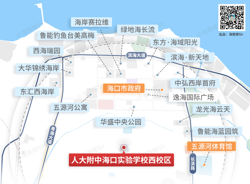 今年2月份,海口市教育局发布关于中国人民大学附属中学海口实验学校(西校区)项目征集社会公众意见的公告,正式披露学校选址于西海岸南片区,原秀英区长德学校处。