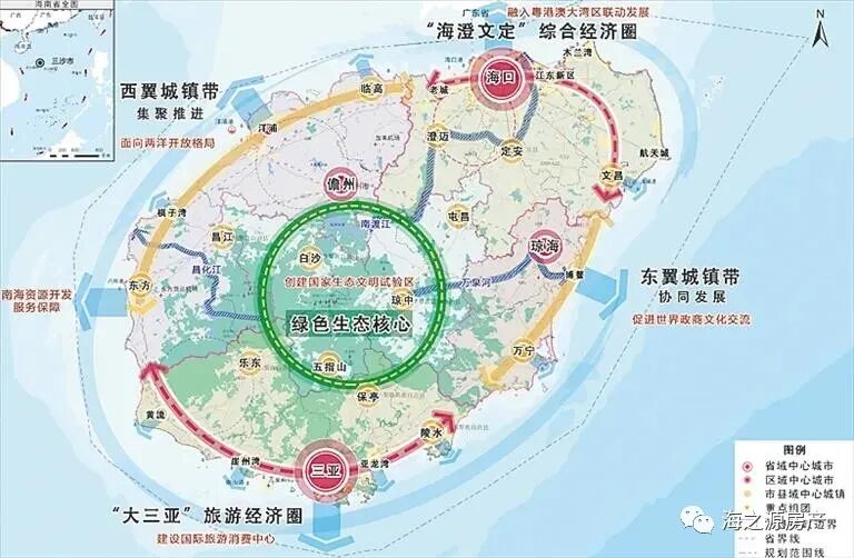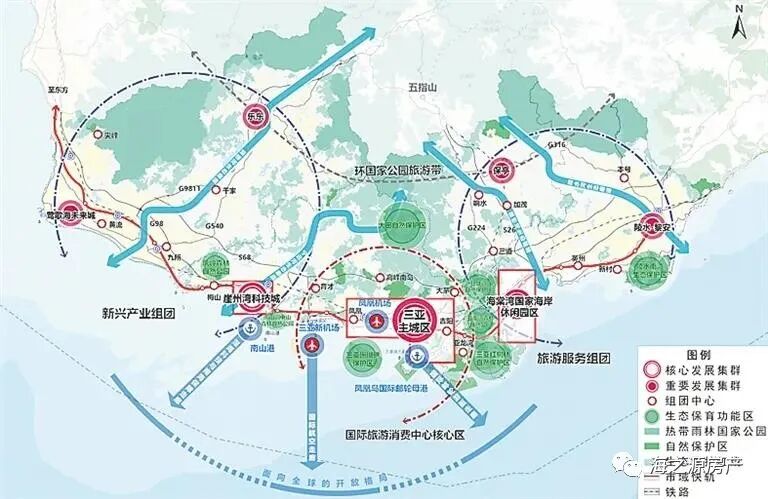 南部的“大三亚”旅游经济着重于房地产开发,包括旅游,文体、健康、医疗、养生结合的房地产;