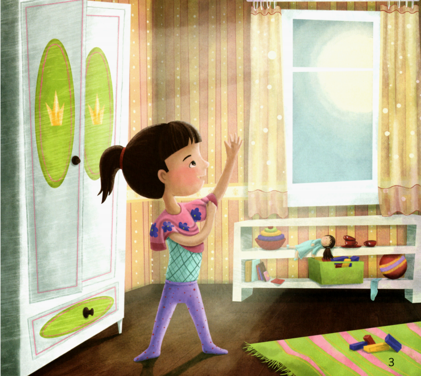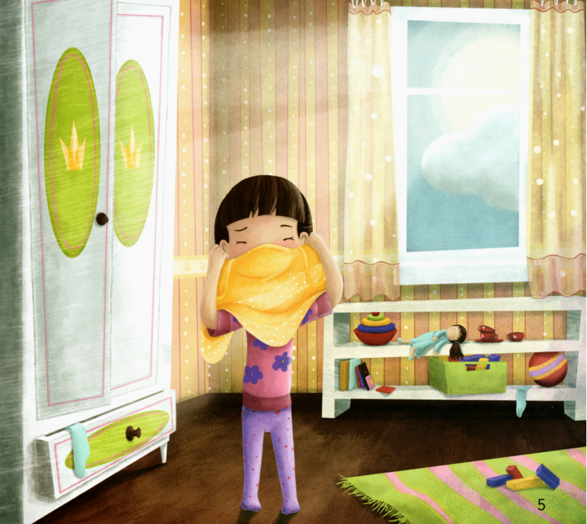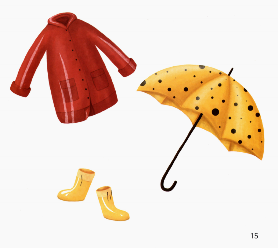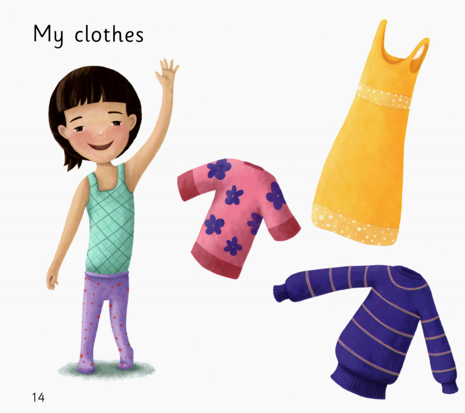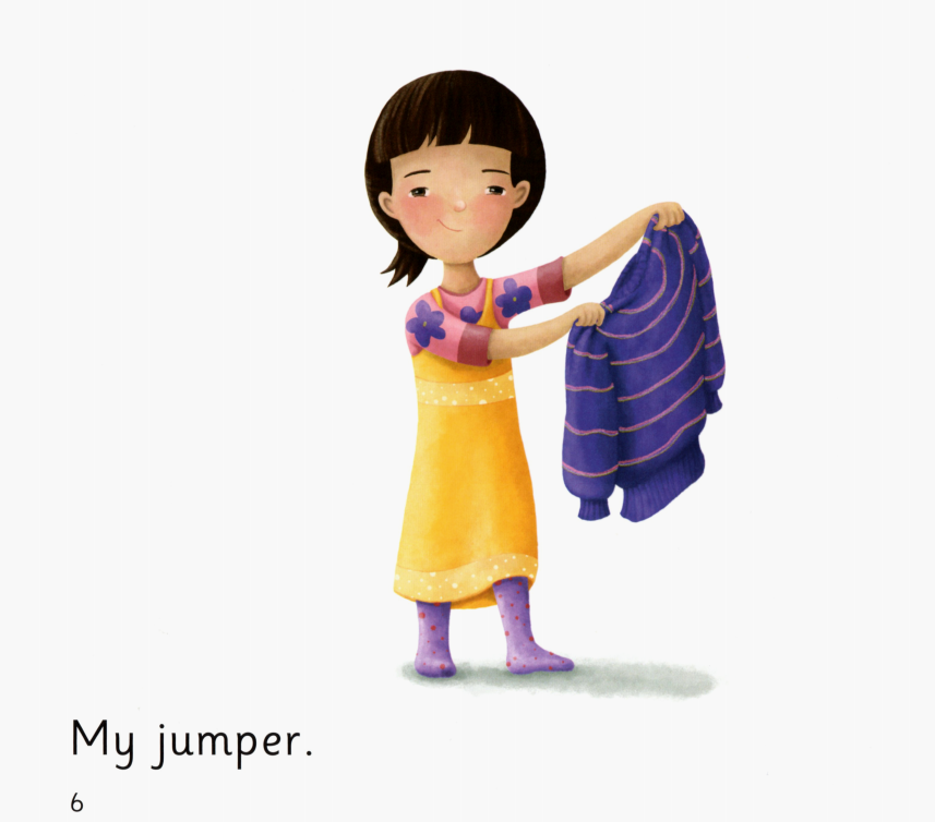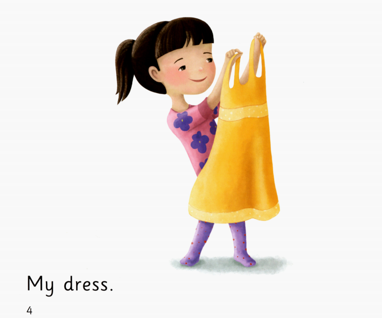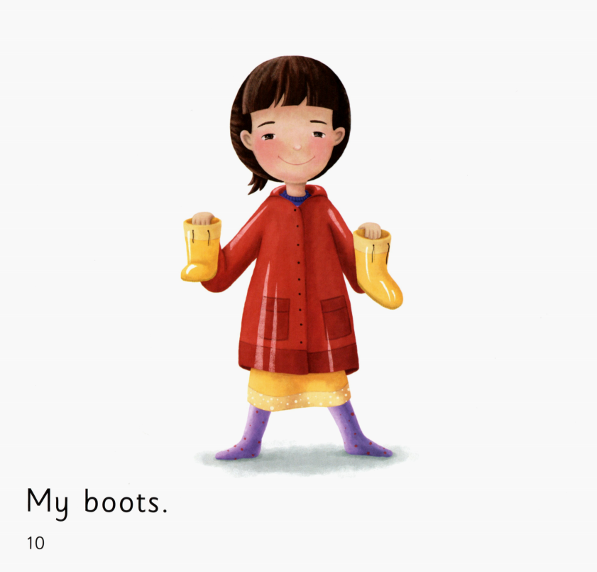 从今天的绘本中,小朋友们可以学习到穿衣服时可能使用的物品名称,比如上衣、连衣裙、针织套衫、外套、靴子等,大家平时可以多加运用哦