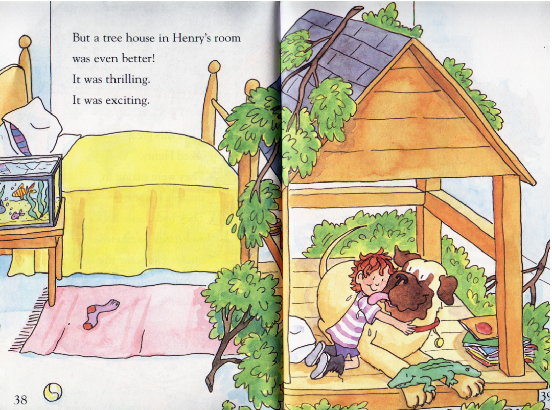 这个计划是什么呢?原来他们把树上的树屋搬到了Henry的房间里。这样Henry和Mudge可以一起在树屋里玩了