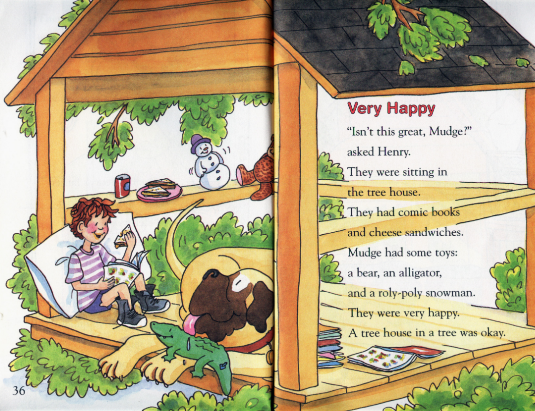 上次讲到:Henry一个人在树屋里待一会儿就会想Mudge,然后就跑回自己房间看看他。Henry爸爸和Jake叔叔为此想到了一个计划。