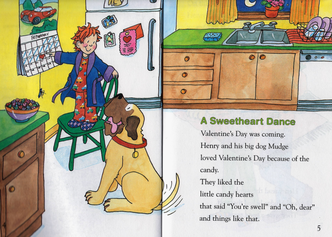 情人节快到了,Henry的爸爸妈妈要去参加舞会。Henry和Mudge很喜欢情人节,因为他们能吃到好吃的糖果。不过,他们不能去参加舞会。在家里没有大人的情况下,他们将会去在街对面的Hopper太太家。Henry喜欢Hopper太太,但他不太喜欢她的大石头房子,因为从外面看,那里有低垂的树,黑暗的窗户,还有门上的滴水兽。