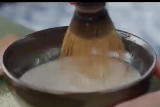 People pour water over powdered (粉状的) tea to create a paste (糊). Then they add more hot water and keep whisking (搅动) it.