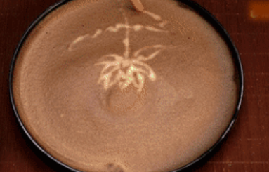 你一定见过有人倒牛奶泡沫把咖啡变成美丽的图案。但是你有没有在一杯茶汤中看到过这种艺术?