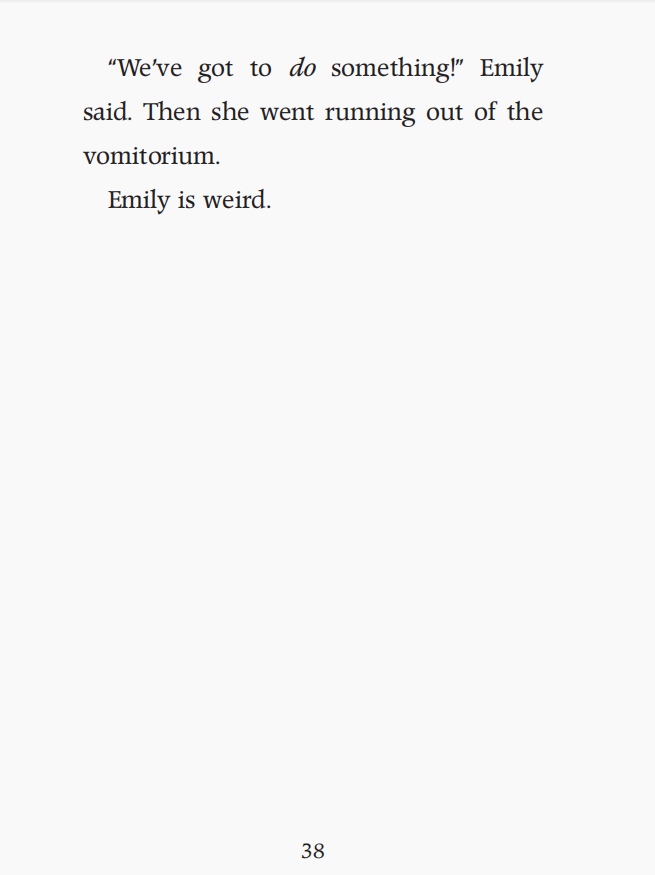 “我们必须做点什么!”Emily说。然后她跑出了礼堂。