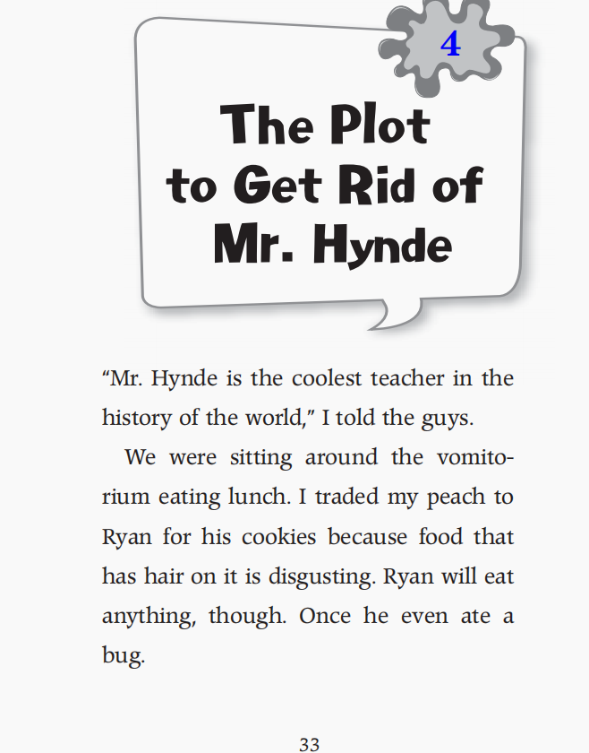 今天同学们在礼堂吃午饭,他们谈论起了新的音乐老师Hynde先生。A.J.觉得他很酷,Michael觉得他不像一位音乐老师,Ryan觉得好在他们不用再唱老掉牙的歌曲了。而坐在旁边桌的Andrea和Emily对Hynde先生的印象可不好。Andrea甚至想让她妈妈(家长教师协会副会长)去找校长解雇Hynde先生。那么Hynde先生会不会遇到麻烦呢?