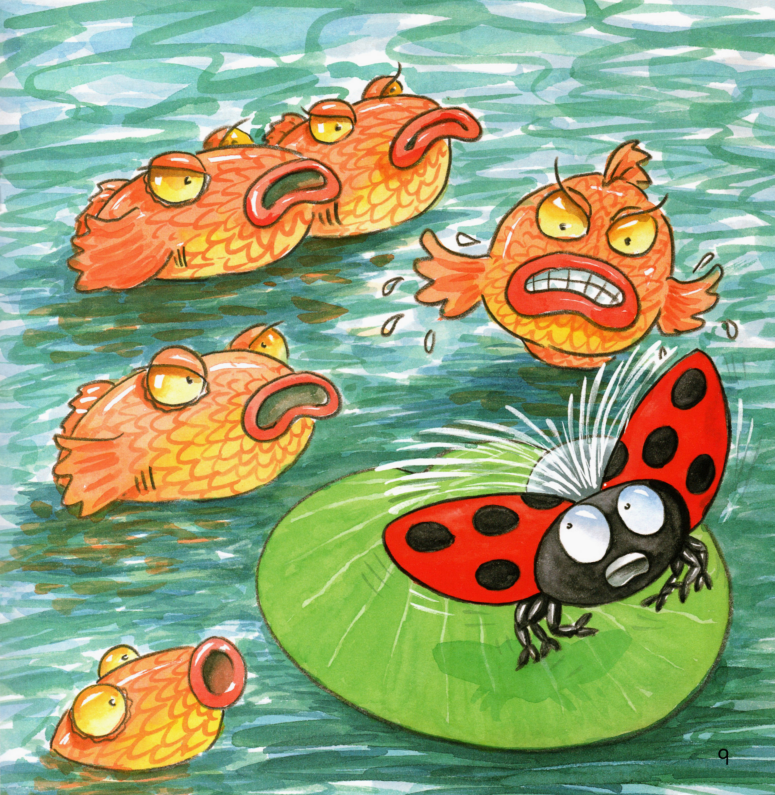 Ladybird is on the pond.