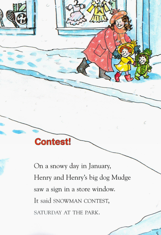 同学们,今天我们来读《Henry and Mudge》系列的又一本新书,这是关于雪人比赛的故事。