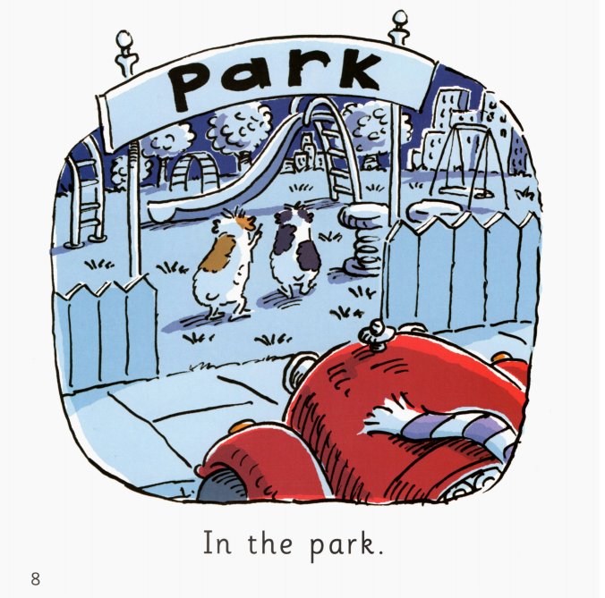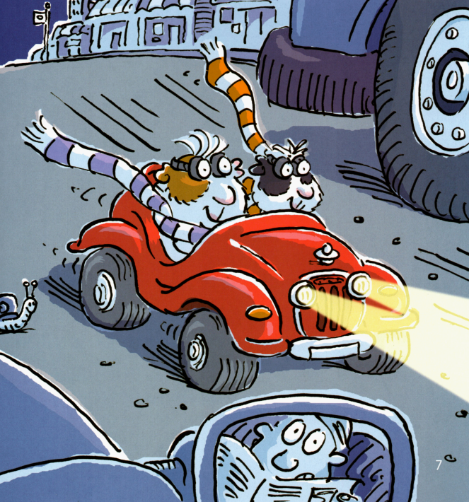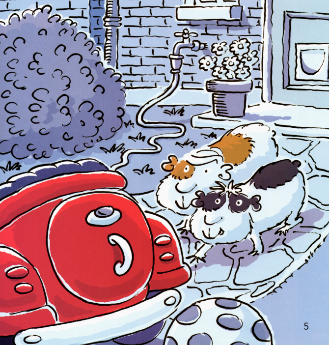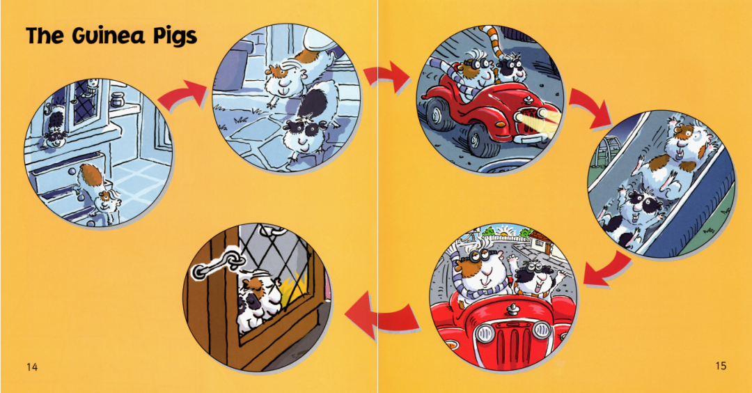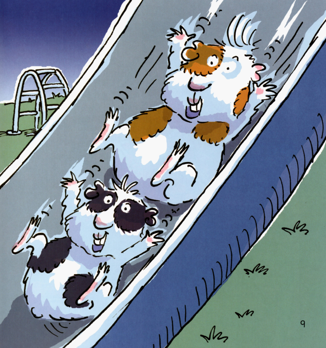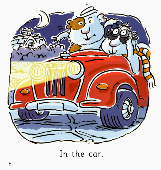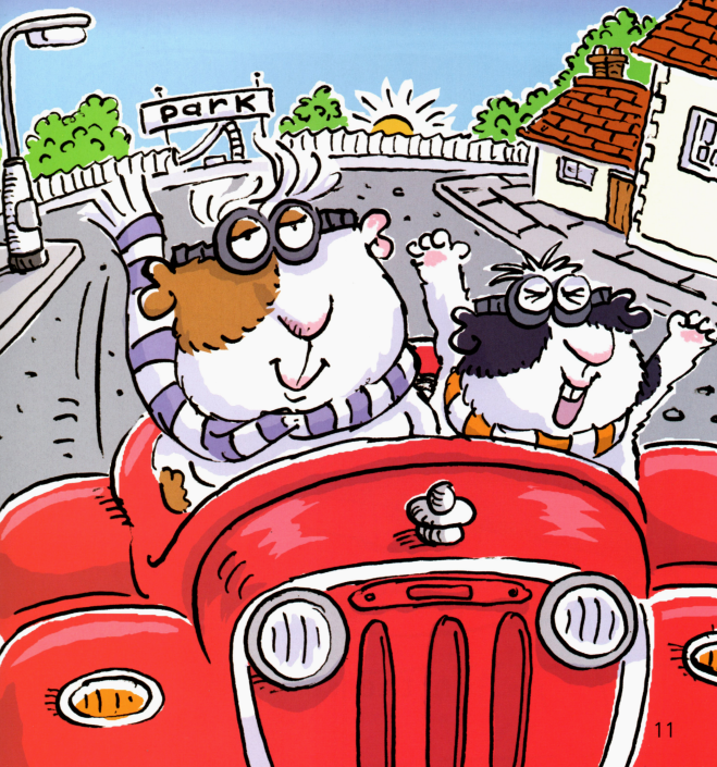 午夜,本来在笼子里的两只小豚鼠逃了出来,跑到花园里,跳到汽车上,开到了公园里。它们在那里开心地玩了一夜。在天亮之前,它们又赶紧开车回到了笼子里睡大觉。主人都没有发现他们的夜间冒险行为。这真是又刺激又有趣呢!