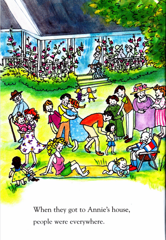 1. When they got to Annie’s house, people were everywhere.