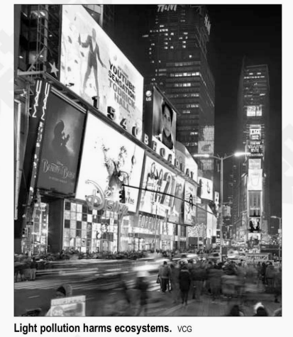 Light pollution happens when too much man-made light harms nature and people. Scientists have found that it is especially harmful to nocturnal (夜间的) animals.