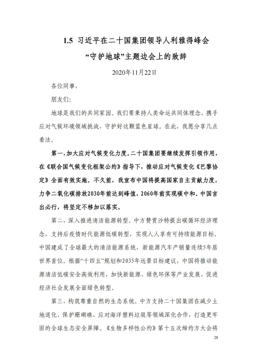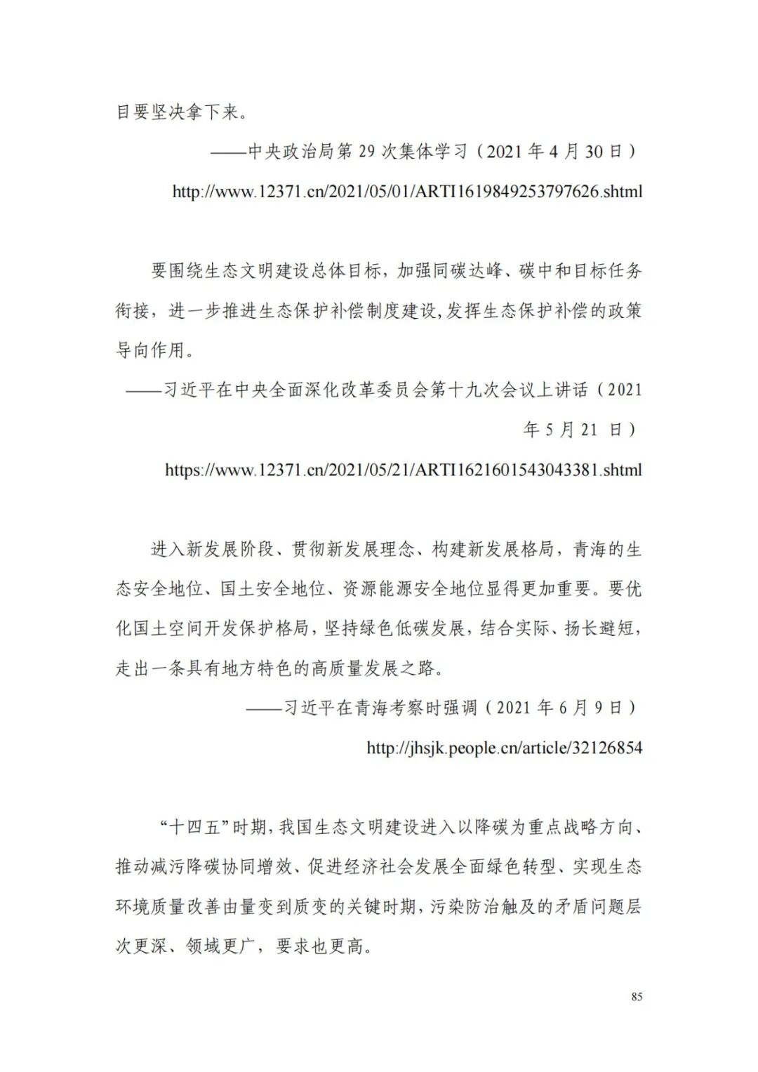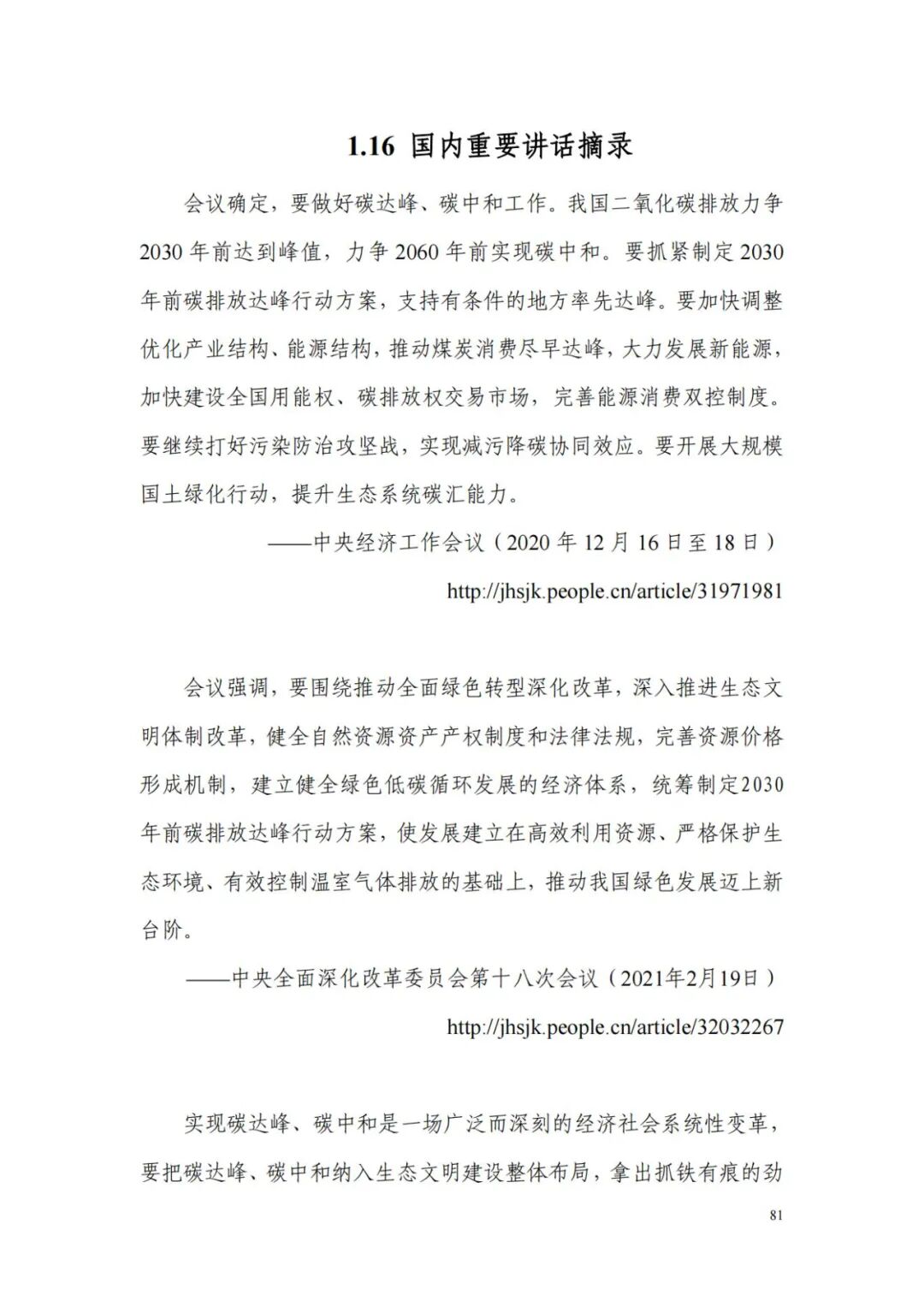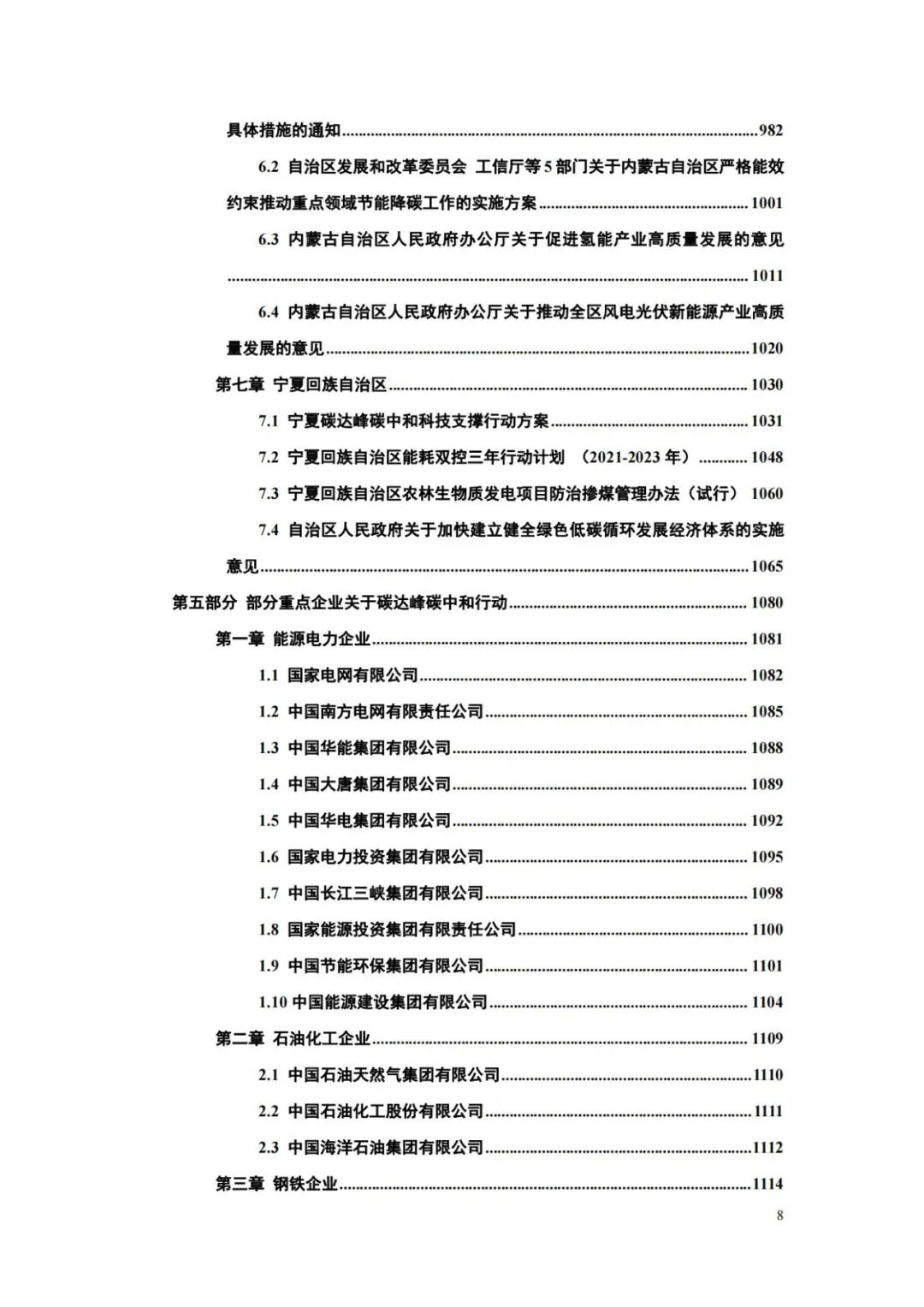 本报告共分六部分。第一部分选编了习近平总书记关于“双碳”工作的系列重要讲话,共计15篇:第二至第四部分汇编了党中央国务院、各大部委、部分地方政府发布的“双碳”政策文件,共计65篇;第五部分收录了部分重点企业的“双碳”行动方案,共计17篇:第六部分收集了部分“双碳”国际协议,共计5篇。
