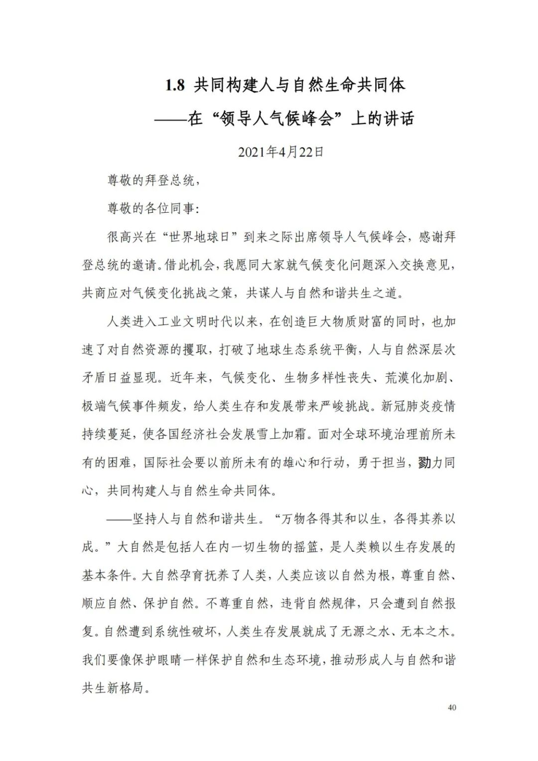 二十大报告共分为十五章。其中,第十章详细介绍”推动绿色发展,促进人与自然和谐共生“。