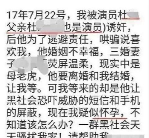 2017年7月份,一位自称姓杨的女子,称自己与杜志国是老乡,自爆曾被杜志国诱奸怀孕后,杜志国却不负责的事情。