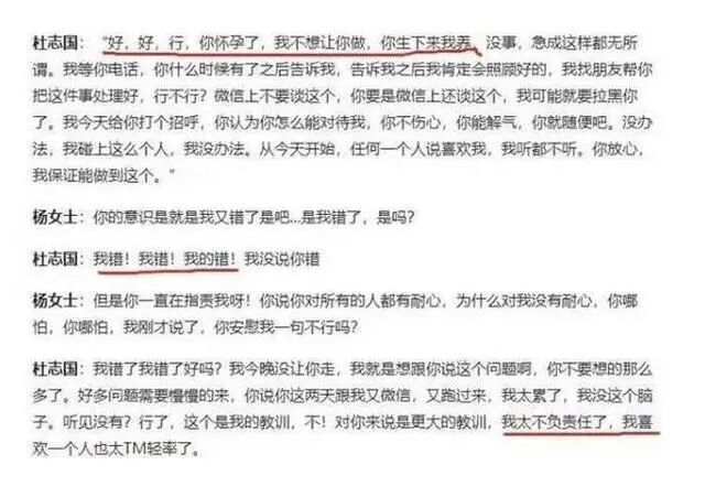 不过杨女士也不甘示弱,直接放猛料,把自己和杜志国的微信聊天记录及电话录音都曝了出来。
