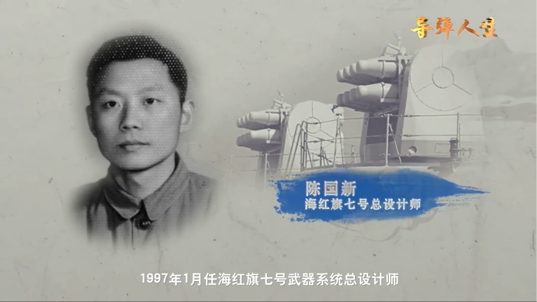 海红旗七号总设计师陈国新(1944.7.30一),1997年1月任海红旗七号总设计师,2000年10月任新型野战武器系统总设计师。他开创了我国防空导弹研制史上舰载超低空领域的先河;圆满完成新型野战防空导弹研制任务,他运用系统工程的方法解决产品研制中的关键技术,树立了以设计为中心,以试验、验证为重点的思想,为型号研制的顺利进行作出了重要贡献。