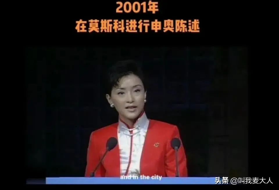 2001年,她一身红色西服,站在莫斯科进行申奥陈述,展示我泱泱大国女性风采。