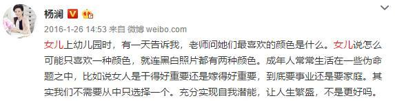 女儿的出生,让杨澜“妈妈”这个身份更加完整,她说自己从孩子身上学到很多。