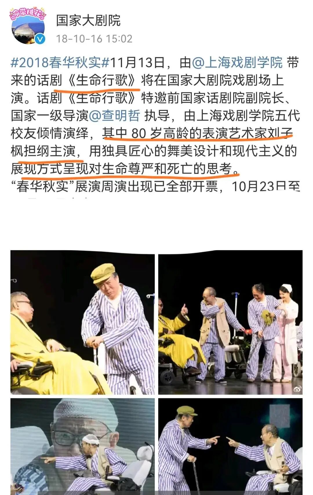 也因此,刘子枫凭借话剧《生命行歌》,拿下了他人生中的最后一个重要奖项——2019年上海白玉兰戏剧奖。