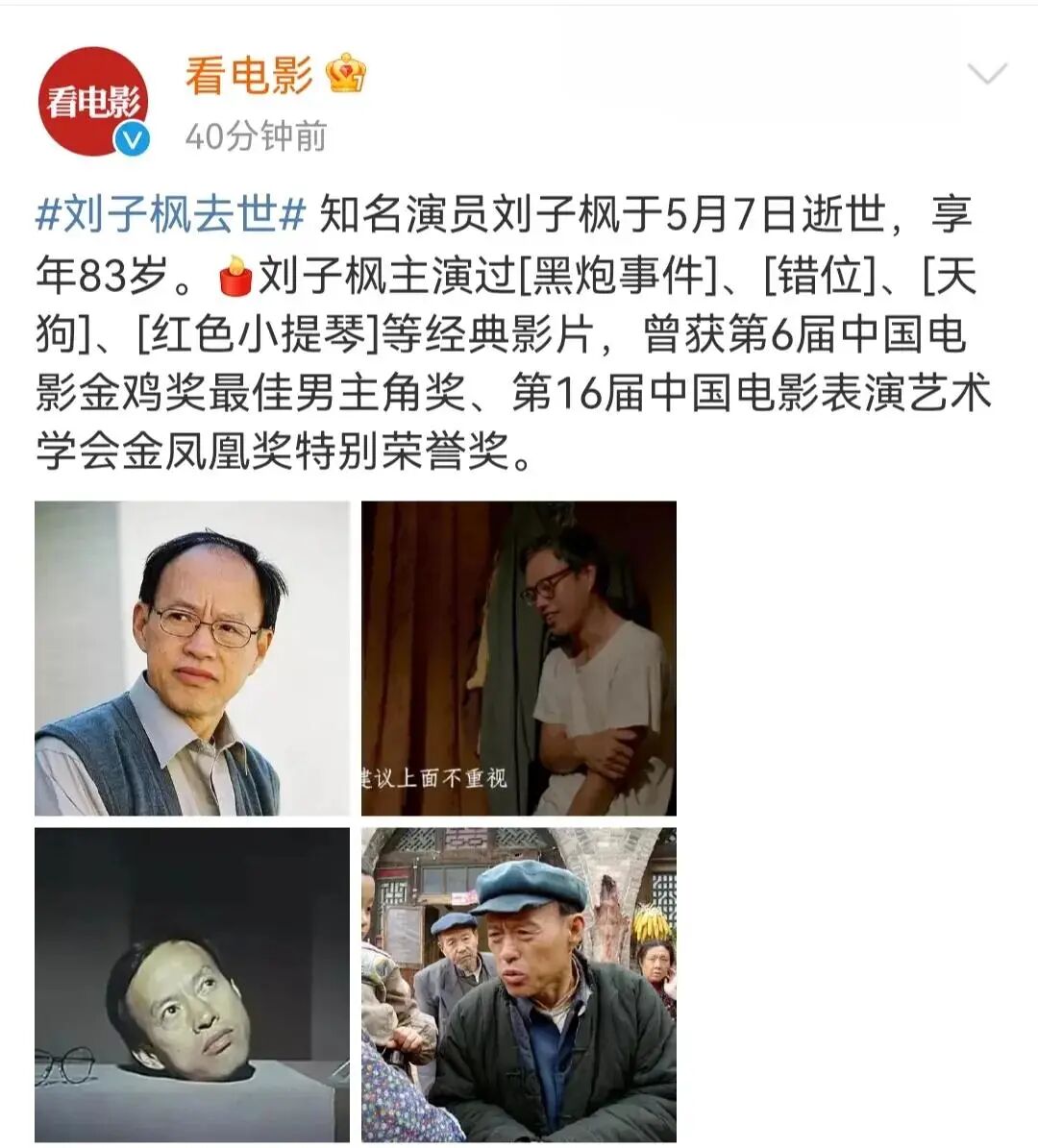 5月7号,据相关电影媒体报道,资深电影人、曾经的金鸡奖“影帝”刘子枫在上海病逝,享年83岁。