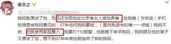 当时的方宏进可谓是焦头烂额,就在这个时候方宏进的女儿方贞在网上爆料自己父亲私生活混乱,在外面养小三,找妻子要钱,妻子不给就拳打脚踢。