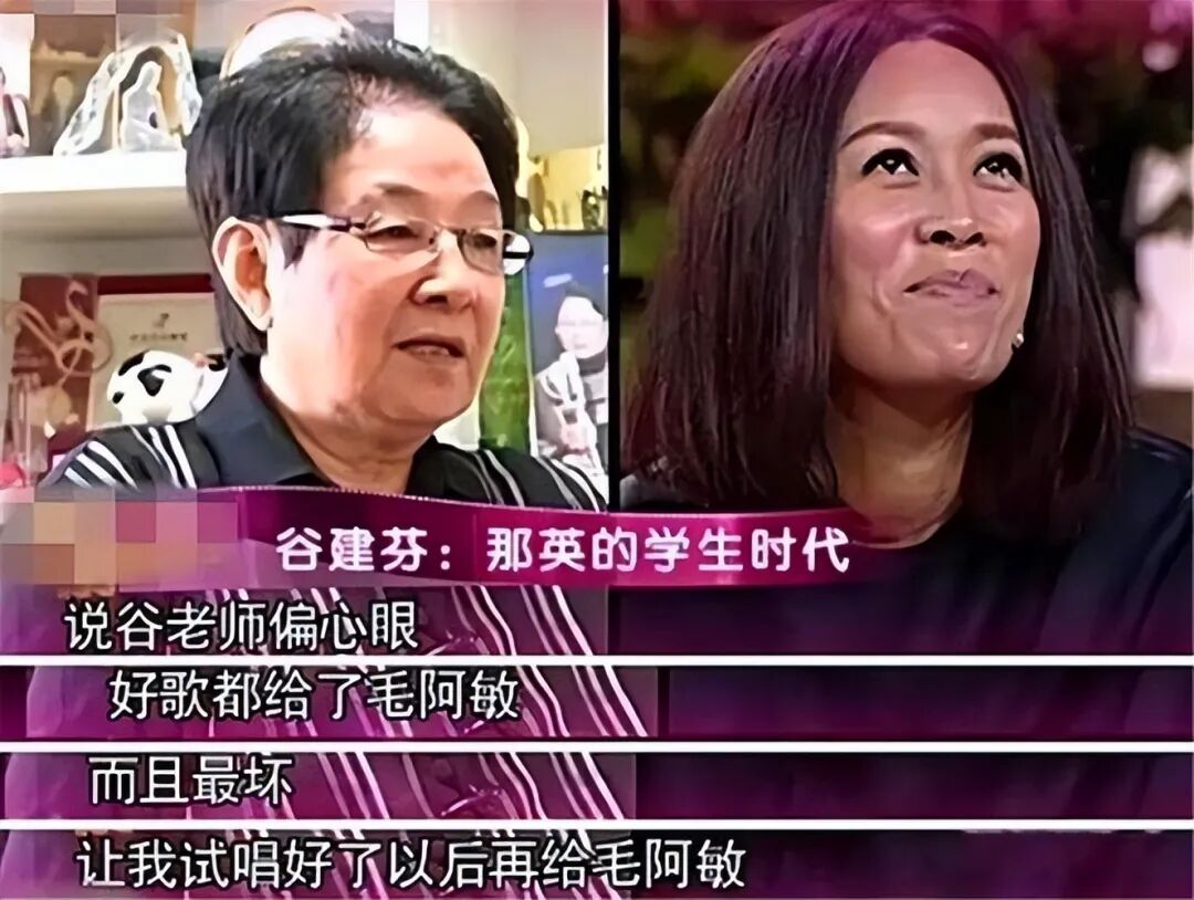 这些学生当中,毛阿敏是谷建芬最中意的,也是最受宠的。直性子的那英还跟老师发了脾气,说谷老师把好歌全给了毛阿敏。