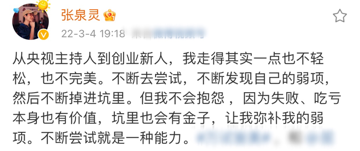 在得知自己身体没事后,张泉灵却并不准备重返央视,人生已经过去了将近一半,既然老天给了她这个重新开始的机会,她就要去做一些自己没做过,但又十分想尝试的事情。