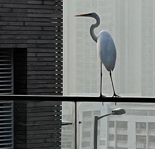 她家的后院大而幽静,站在透明栅栏处,就可以看见远方的景色,旁边还有专门的休息区,草坪也被修整的非诚整齐,远处还被树林围绕,再加上山顶上的一点雾气,有种人间仙境的感觉,就连仙鹤都被吸引来了。