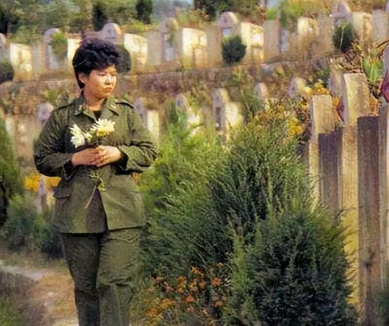 在舞台上的董文华,身着军衣,神采飞扬,短发即干练又美丽。