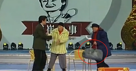 终于,赵本山拿着包急匆匆上来了,一切继续,观众没有察觉。