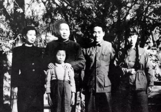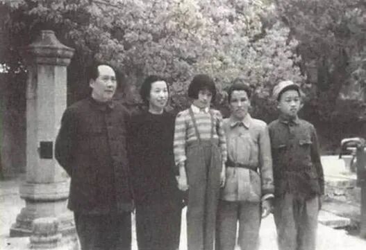1949年4月,毛泽东、江青和毛岸英、刘思齐、李讷合影