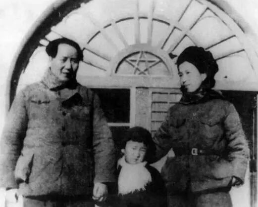 1946年,毛泽东与江青及孩子李讷在延安枣园合影