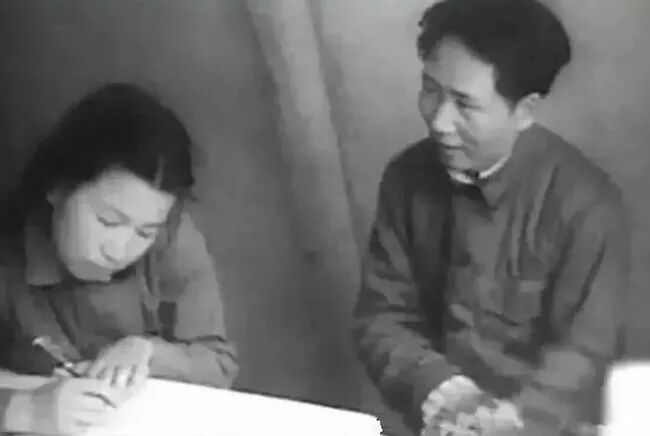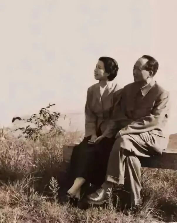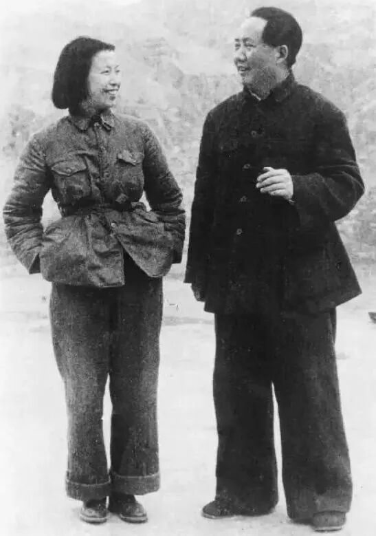 江青与毛泽东在延安图为两人相视而笑瞬间