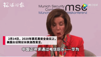 据观察者网报道,2020年2月14日,美国众议院议长佩洛西在慕尼黑安全会议的首日活动中讲话称,各国在建设5G网络时应远离中国科技公司华为。