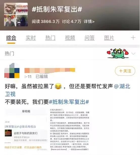 声势浩大,导致湖北卫视紧急删除了朱军所有的镜头。之后,朱军再也没有在任何电视镜头面前出现过了。