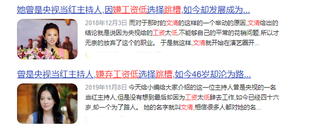 文清的起点高,名声一度高过董卿,但因为有了别的选择,以至于文清的现状远不能和当年相提并论。