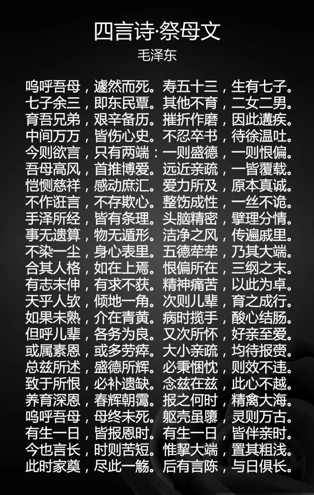 这是一篇伟人念颂母亲的绝唱,字里行间凝结着母慈子孝的真诚情义。