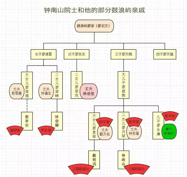 发展到钟南山,这算是第五代,还能够一门双院士,岂止是厉害,简直就是太厉害。