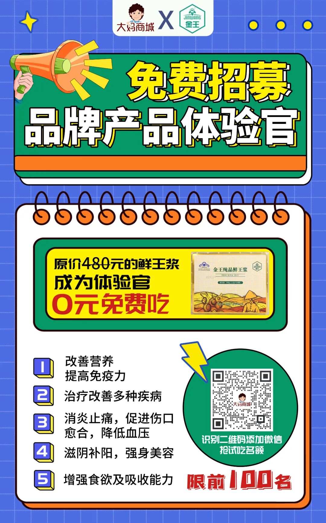 ➢【免费领取】北京大妈有说话现招募100名免费试吃体验官,原价480一盒的“金王鲜蜂王浆”,参与活动【免费】试吃!
