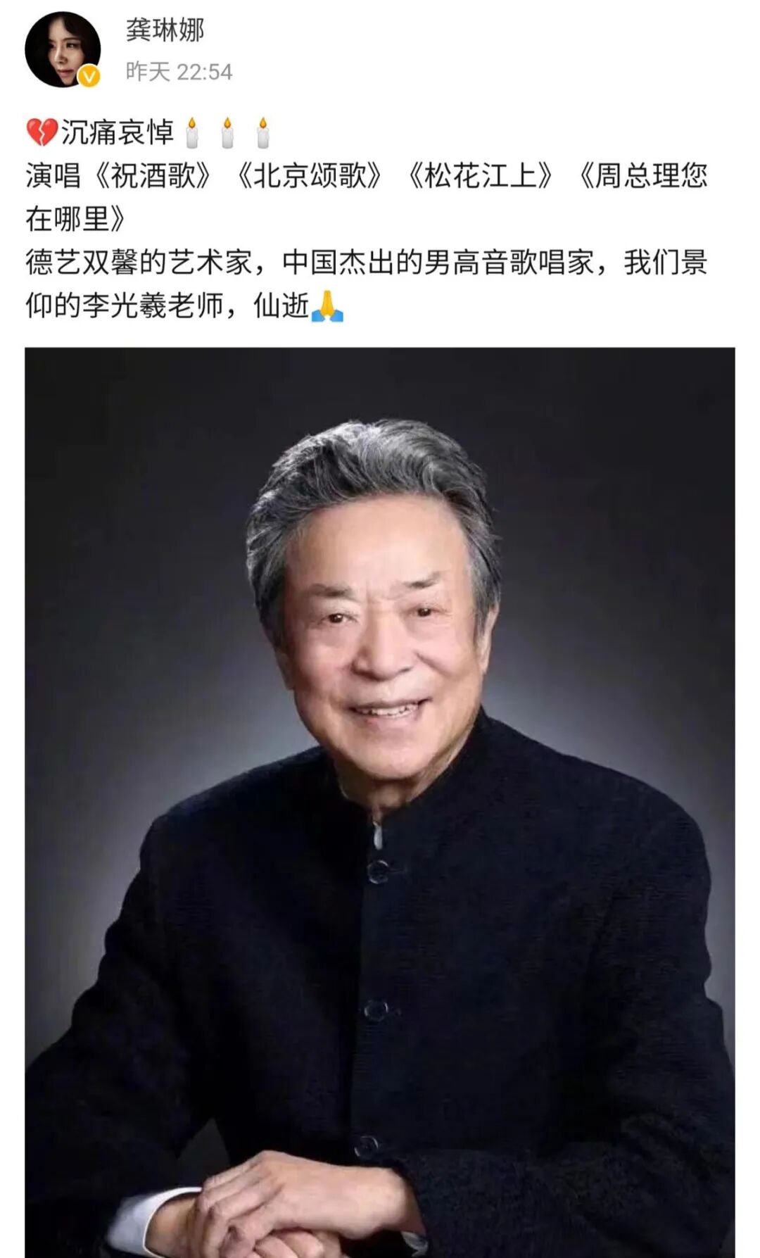 中歌院副院长追忆,歌唱家龚琳娜也在微博发文悼念。