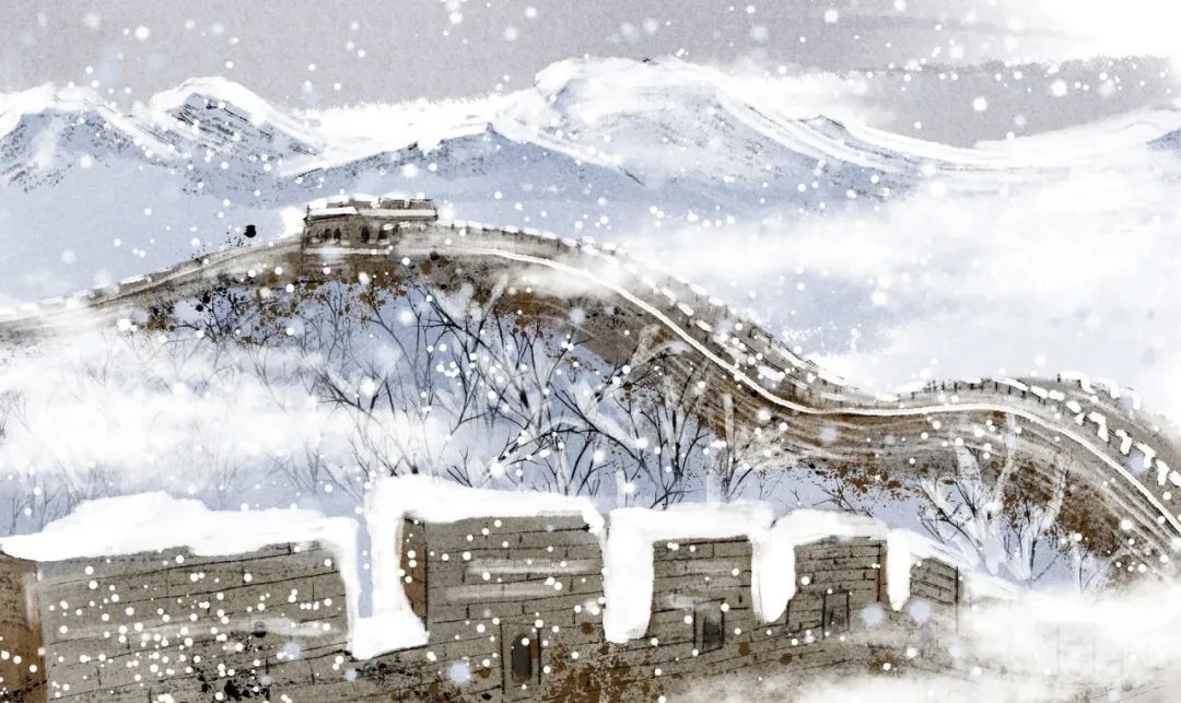 “北国风光,千里冰封,万里雪飘”,12字起笔不凡,“千里”、“万里”气势何等壮大,让人的眼前顿现一片被大雪覆盖的苍茫河山。