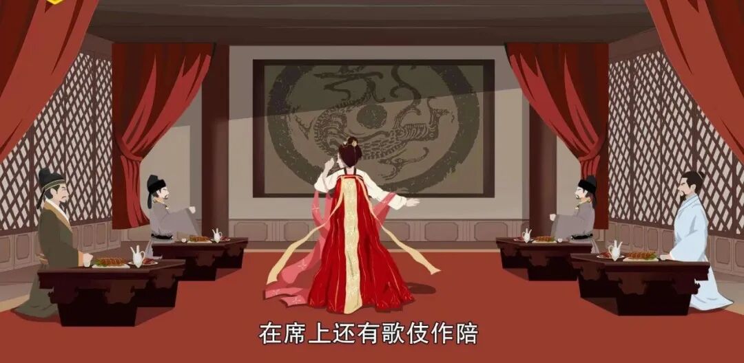 宴会上那梳着高高发髻、妆容精致的歌女,满面春风地唱了一曲《杜韦娘》。