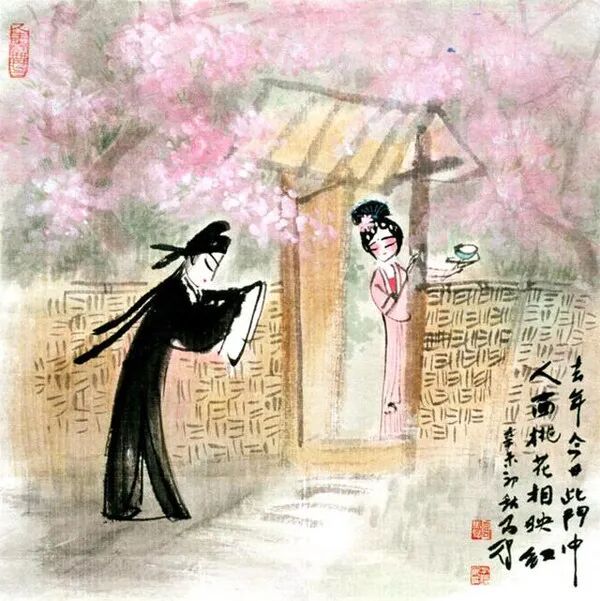 “小姐,我叫崔护,想向你讨一碗水喝。”