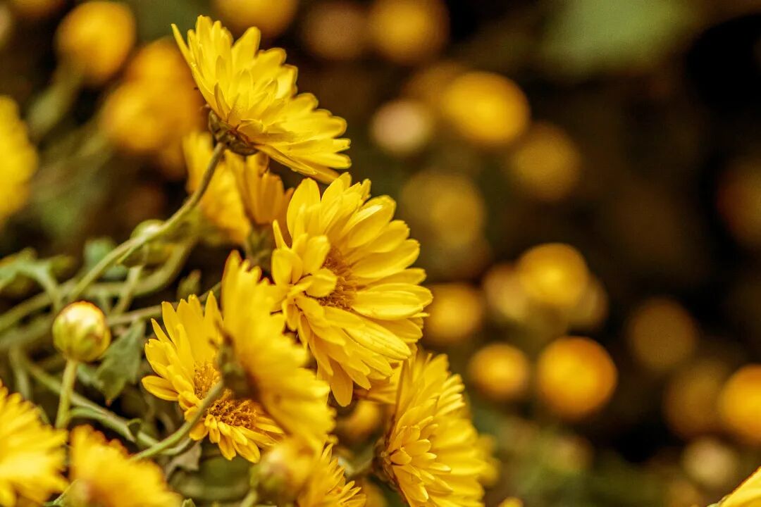 菊花在秋日姗姗来迟,并不与百花争艳。