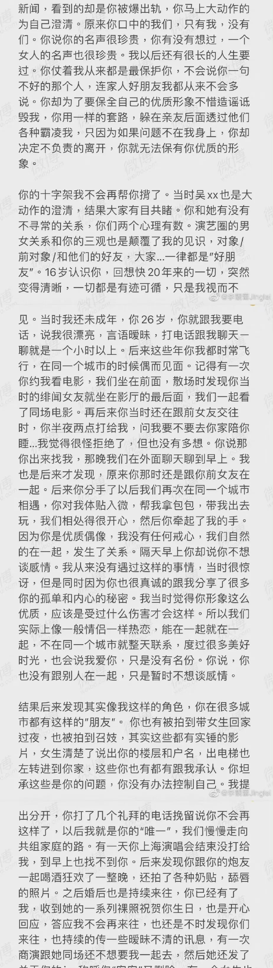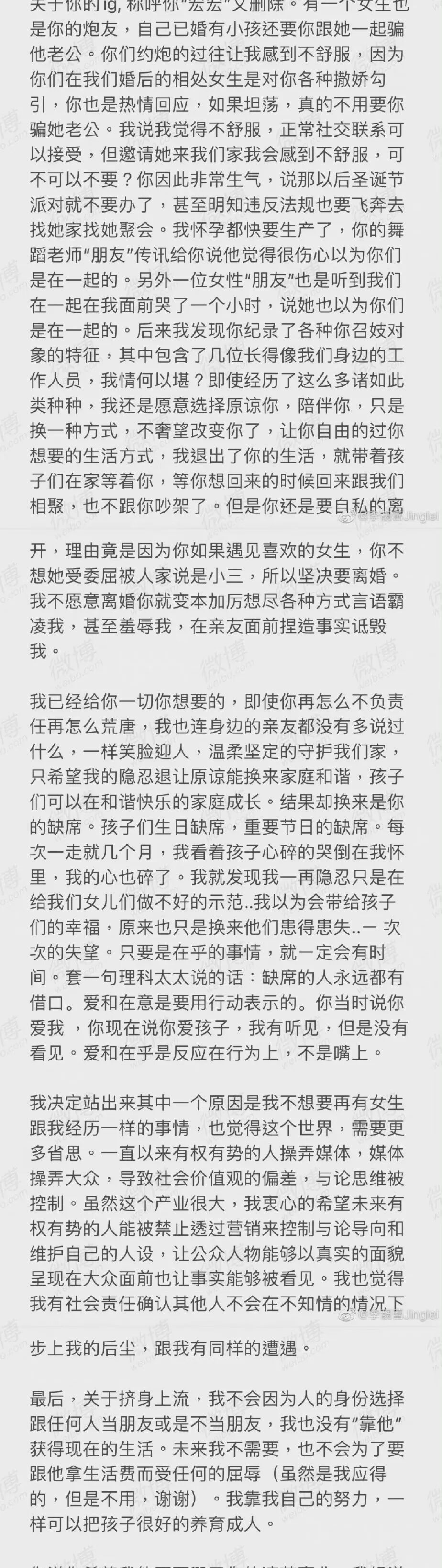 王力宏前妻李靓蕾,发四千字长文控诉王力宏,召妓、出轨、冷暴力......曾经众人眼中的优质偶像、好男人,一夜间人设崩塌。