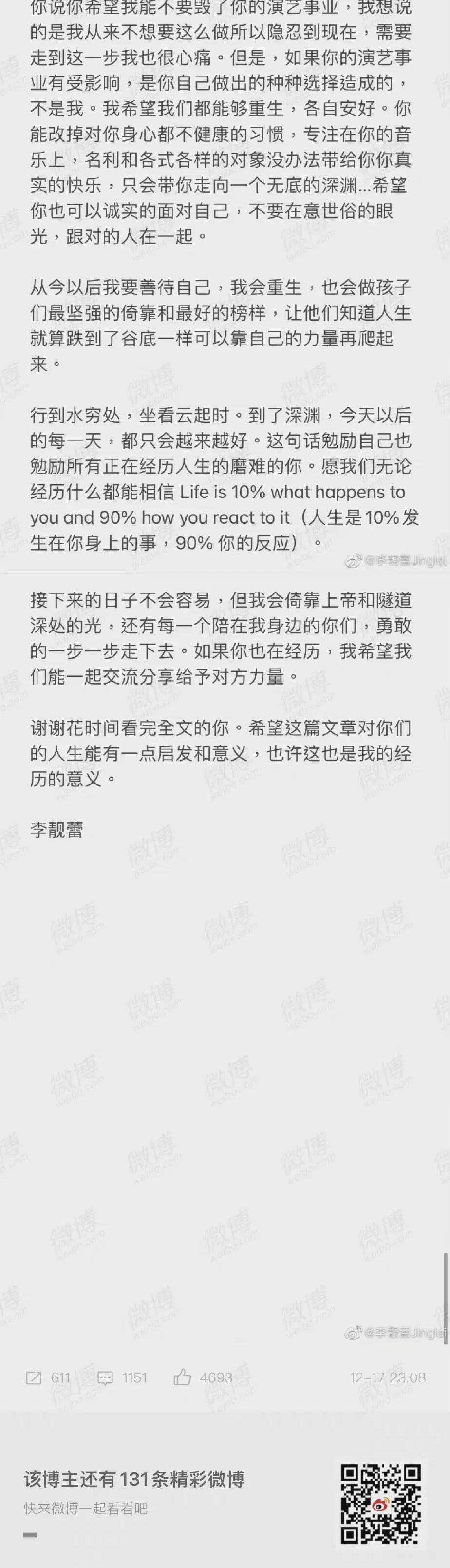 而在这篇长文的最后,李靓蕾也用自己的经历,警醒着我们每一个人:
