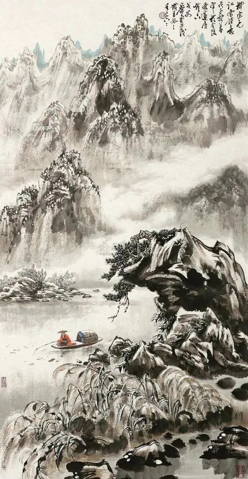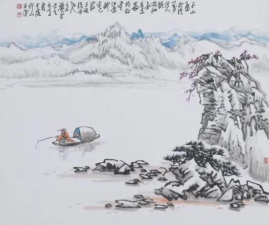 假如说开头两句“千山鸟飞绝,万径人踪灭”是全然的冷,那么在结尾这两句“孤舟蓑笠翁,独钓寒江雪”里,我却读出了一种炽热的暖。