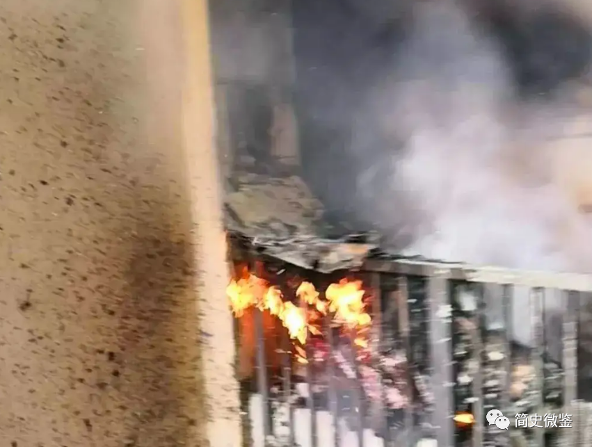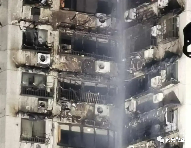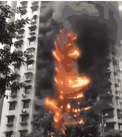 紧接着,巨大的火苗就往外延伸,很快烧到了三楼阳台,就这样逐层往上,一直到顶楼都无一幸免。