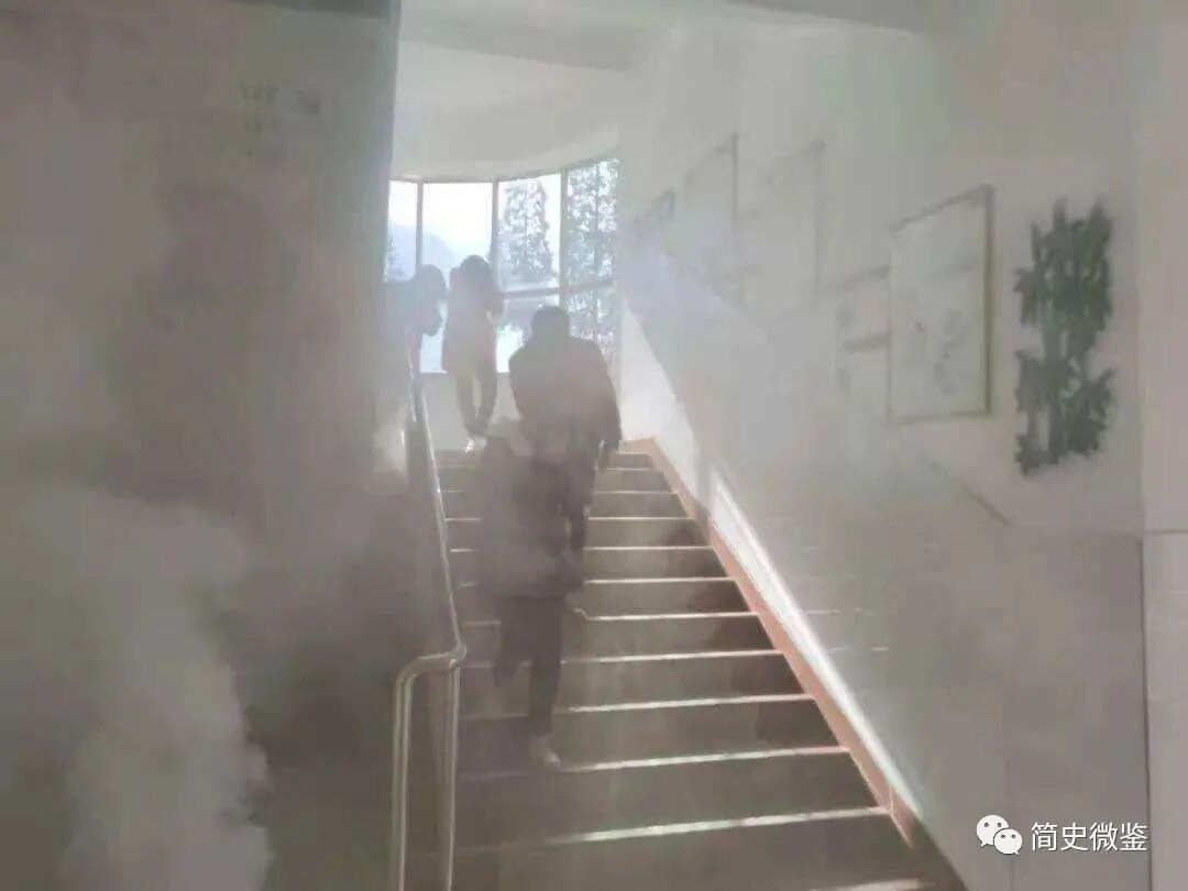 每个人都由消防员搀扶,带着跑下楼梯,整栋楼的楼道里除了听到噼里啪啦的声音外,就只有自己的呼吸声了。
