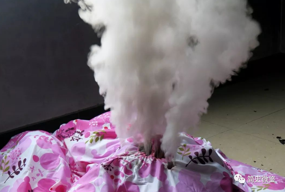 在棉被着火后,没有消防安全意识的他,仅仅是泼了一桶水就离开了房间。